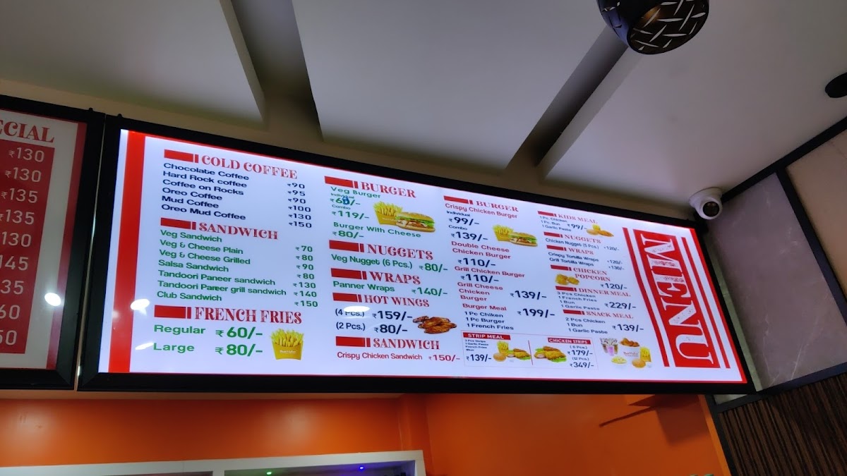 This charming cafe specializes in thick, creamy shakes and an array of tantalizing snacks that can satisfy any craving. Start with their signature Kit Kat Shake—a blissful blend that boasts rich chocolatey flavors and a delightfully thick texture, perfect for sweet tooth enthusiasts, all for just ₹160.00. If you’re in the mood for something savory, the Chicken Burger should not be missed. Priced at ₹120.00, this burger is a masterpiece of crispy, tender chicken enveloped in a soft bun, creating a symphony of flavors with every bite. And for those who crave a little zing, the Hot Wings—crispy and tangy—will take you on an explosion of delightful tastes for only ₹185.00.